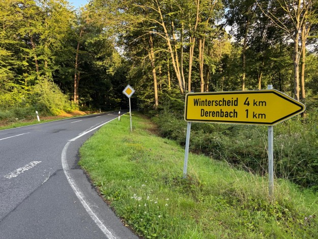 b) Hatterscheid: Abstand zum Windpark nach Osten 762 m, die Anlagen sind im Betrieb mit ca. 40-45 db hörbar, Schattenschlag und Flackerlicht am Morgen für die Anwohner sind wahrscheinlich.